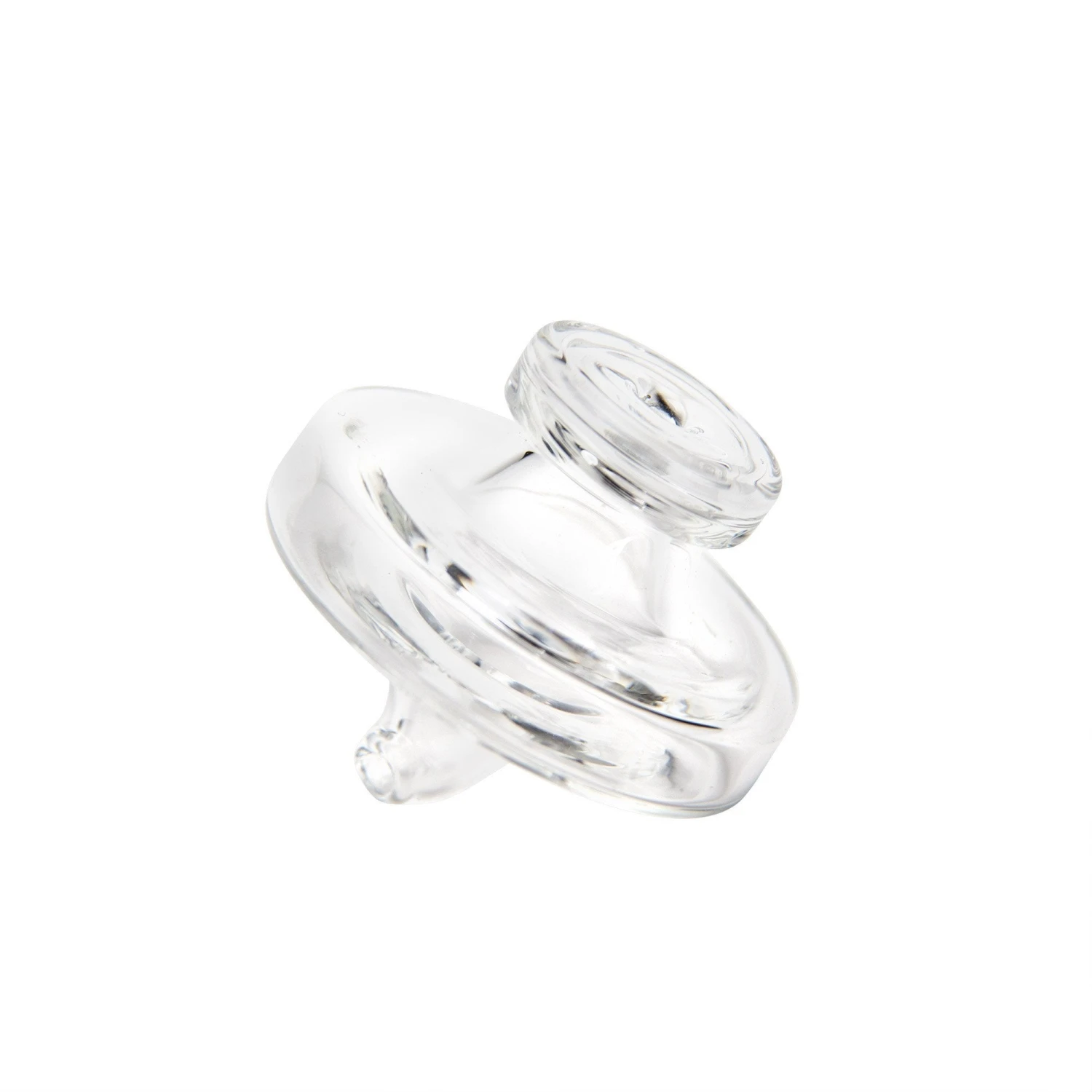 Drop it on and watch your dab reach its peak like never before. This little and efficient airflow carb cap will rest on any bucket that is at least a half inch wide. The directional nozzle pushes air into the place you dropped your dab spreading it against the hot surface helping to vape it completely These little top or UFO shaped glass carb caps are easy to store and look attractive on a table-top.