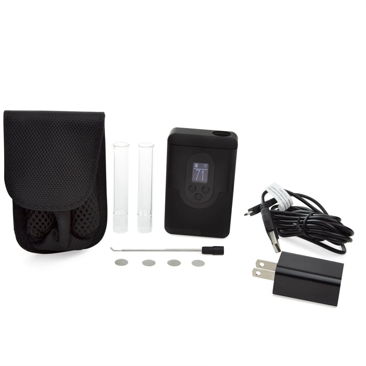The ArGo features a convenient glass pod system that allows you to pack and go. Each unit comes with two glass pods/mouthpieces, a charger, several screens, a battery, and a carrying case. The swappable 18650 battery provides about 1.5 hours of continuous use, delivering smooth terpene-rich hits.
