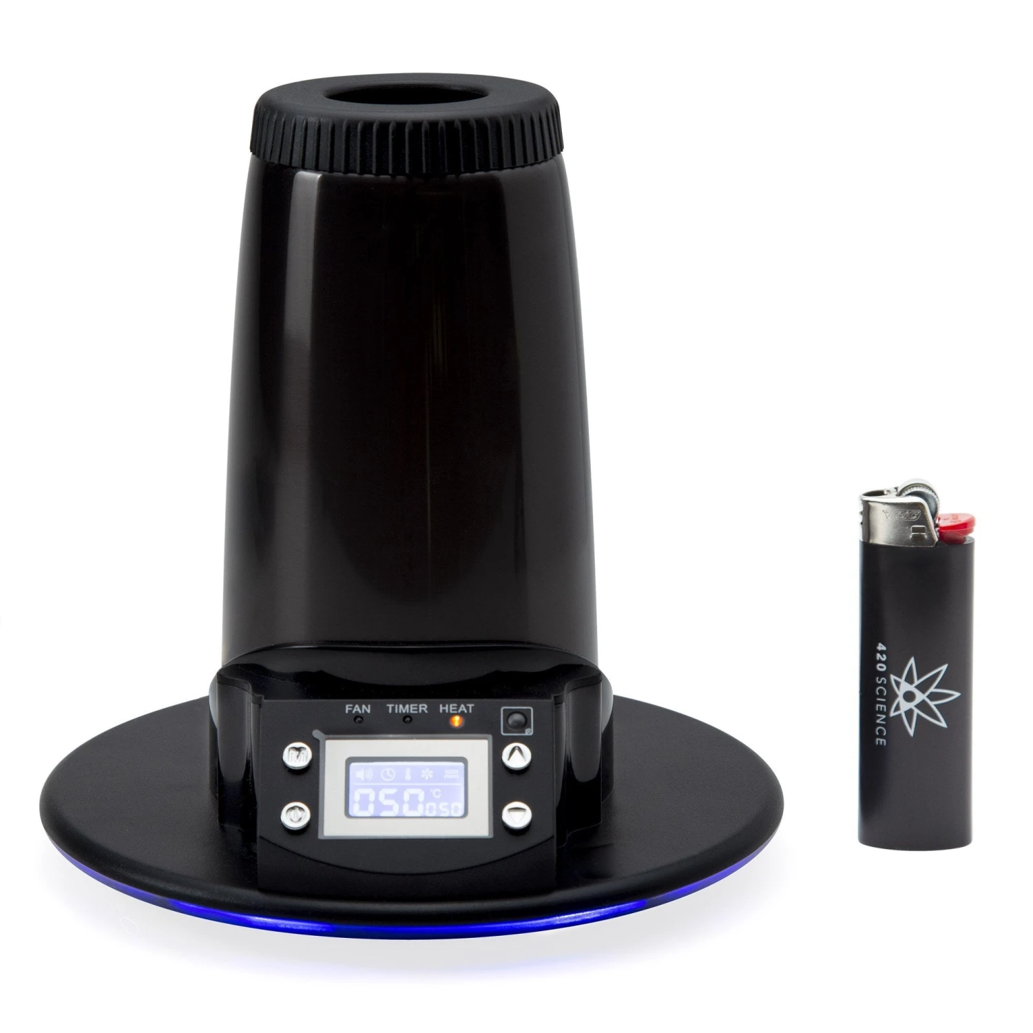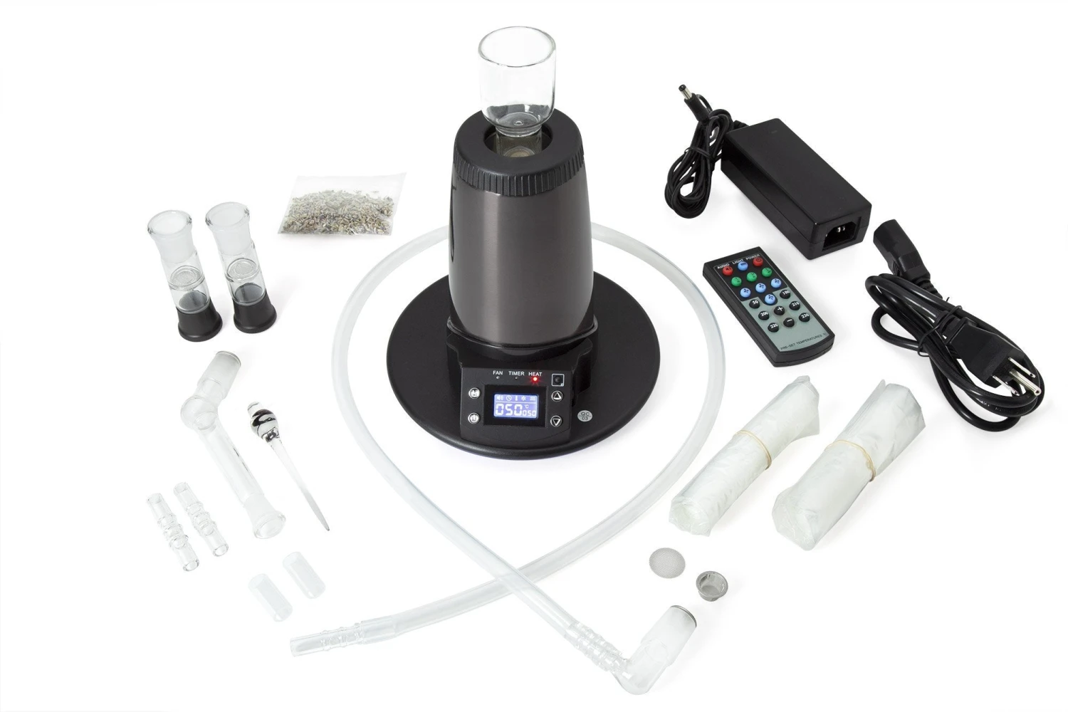 The Arizer Extreme Q desktop vaporizer is constantly in a race with the Volcano to be the most popular and well-reviewed vaporizer in the world. The vaporizer works with either a mini whip or a turkey balloon bag. The glass mouthpiece makes toking from the whip or bag feel like smoking a pipe but with the flavor and potency of vape.