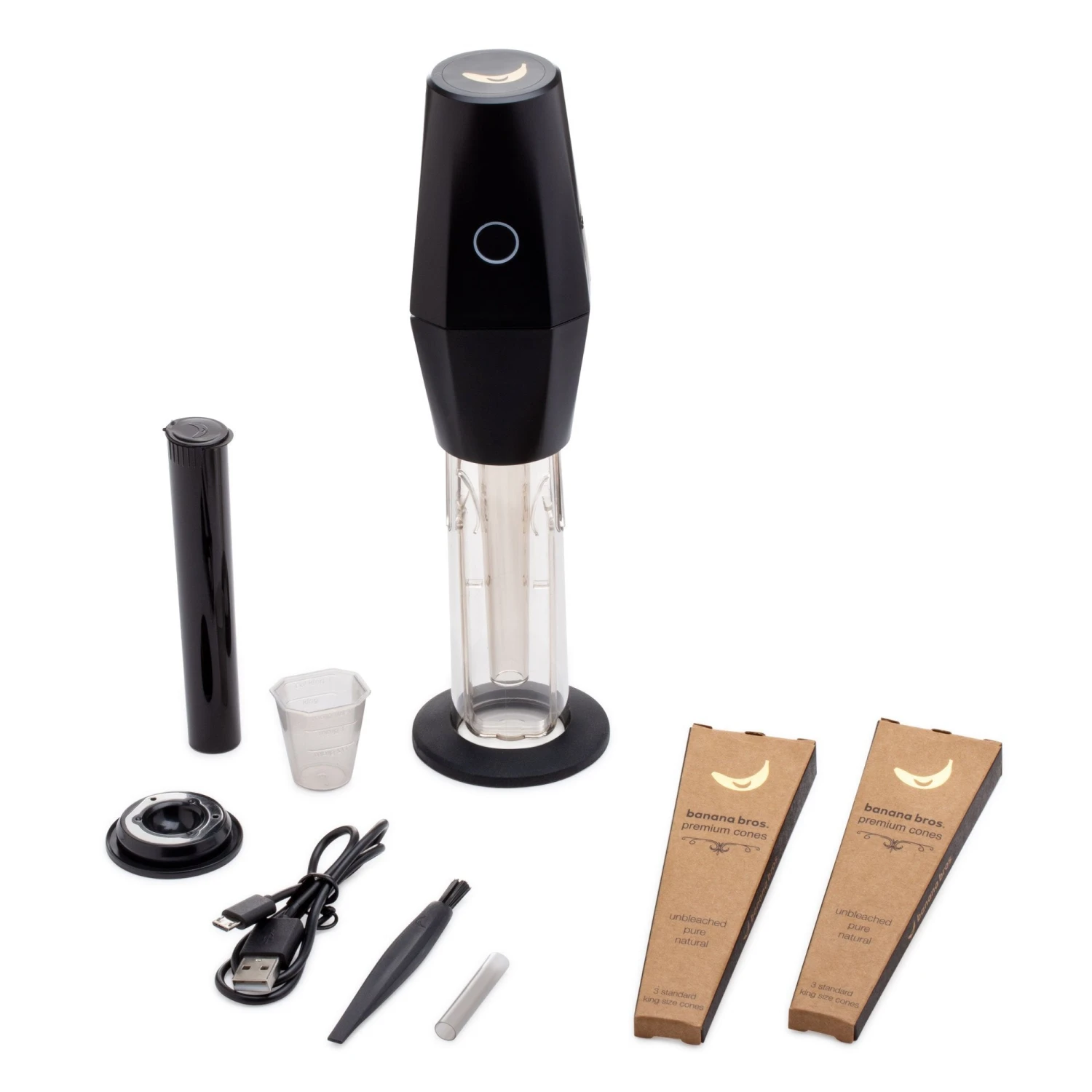 The OTTO grinder is the first and only automatic cone filling machine. Whether your material is sticky, moist, dry, or full of stems, it’s an electric weed grinder that fills a perfect cone every time at the touch of a button. The Banana bros otto automatic grinder and filler provide a superior smoking experience with a smooth draw and no air pockets, paper runs, or waste. OTTO can also be used to fill bowls, pipes, or any stash container.