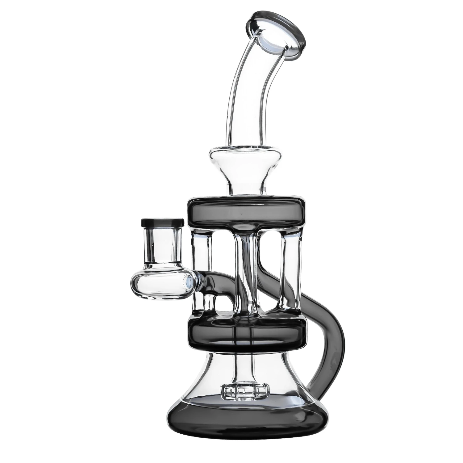 The Cyclone Recycler Dab Rig will add a fun spin to your dab sessions. With its innovative Klein tube design, this rig creates a mesmerizing cyclone effect, rapidly spinning the water and your concentrate vape for maximum filtration and flavor. Crafted with a 90-degree angle for the banger, it ensures comfortable and easy access while keeping the heat away from your face. Choose from a dope range of colors and get ready to experience smooth and flavorful hits.