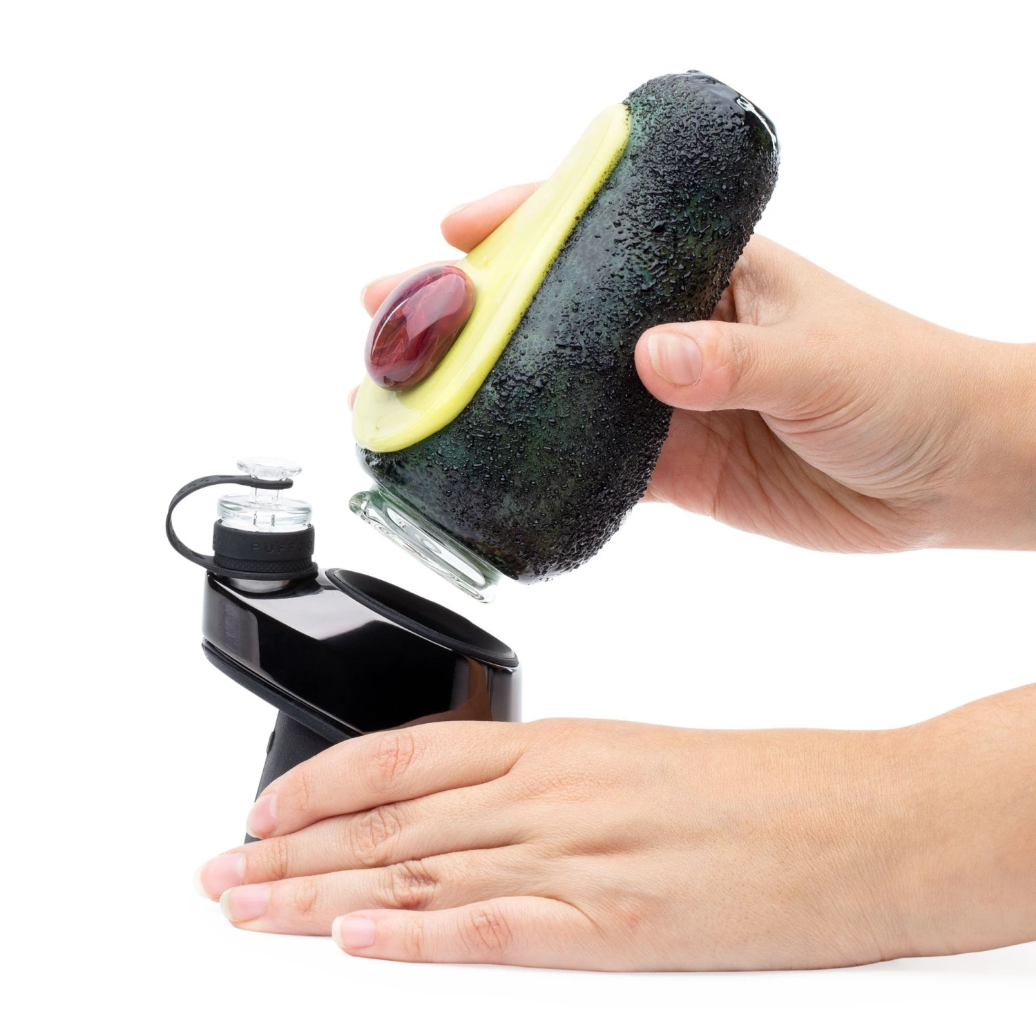 This model features the Empire’s interesting Avocadope line of pipes and accessories. The inside of the attachment has a single slit percolator that directs water down to the back of the piece to reduce splashback. This mouthpiece works with more water than the original so you can add a bit more filtration or drag if you enjoy smoothing out your hit. The large round chamber produces a rumbling chug as vapor is pulled. A session with this pipe is sure to leave you feeling like you made some healthy choices.