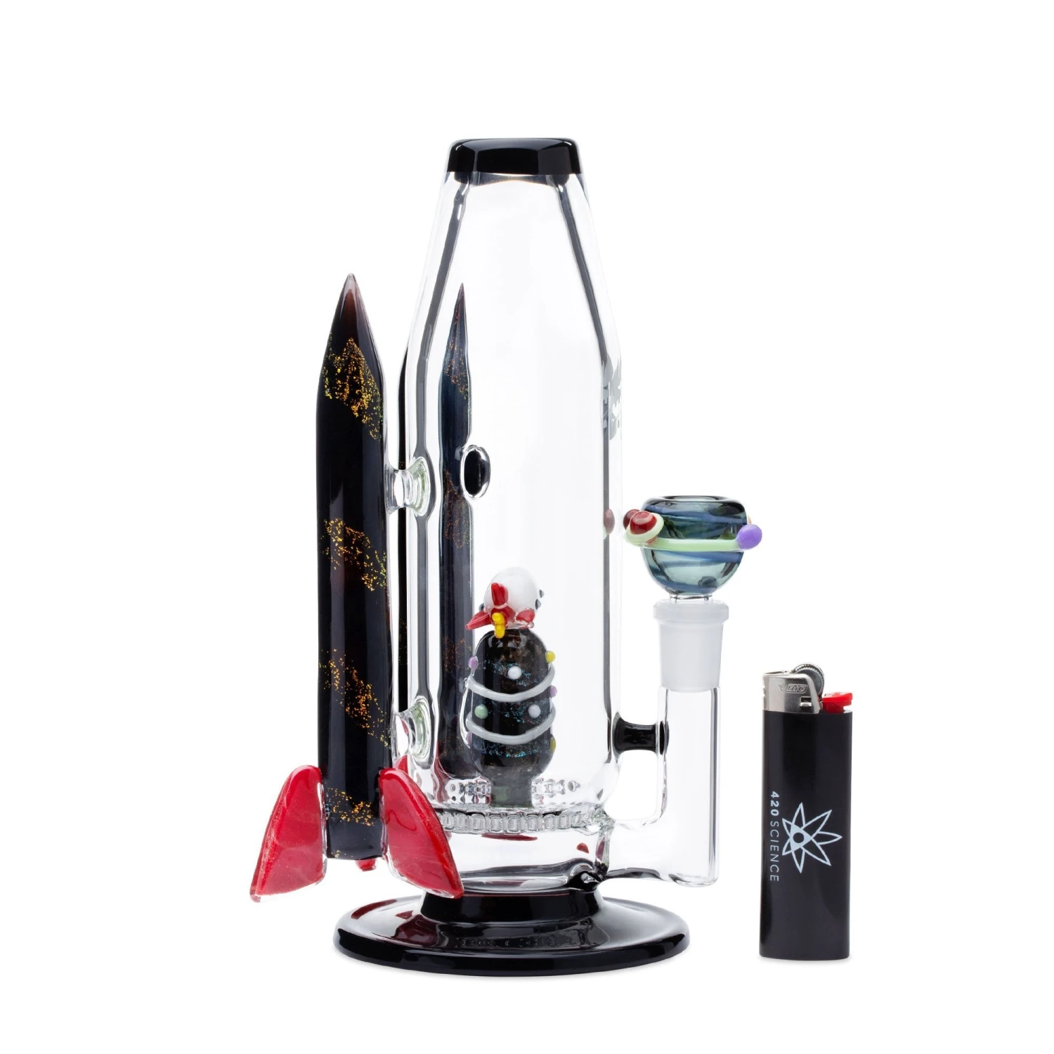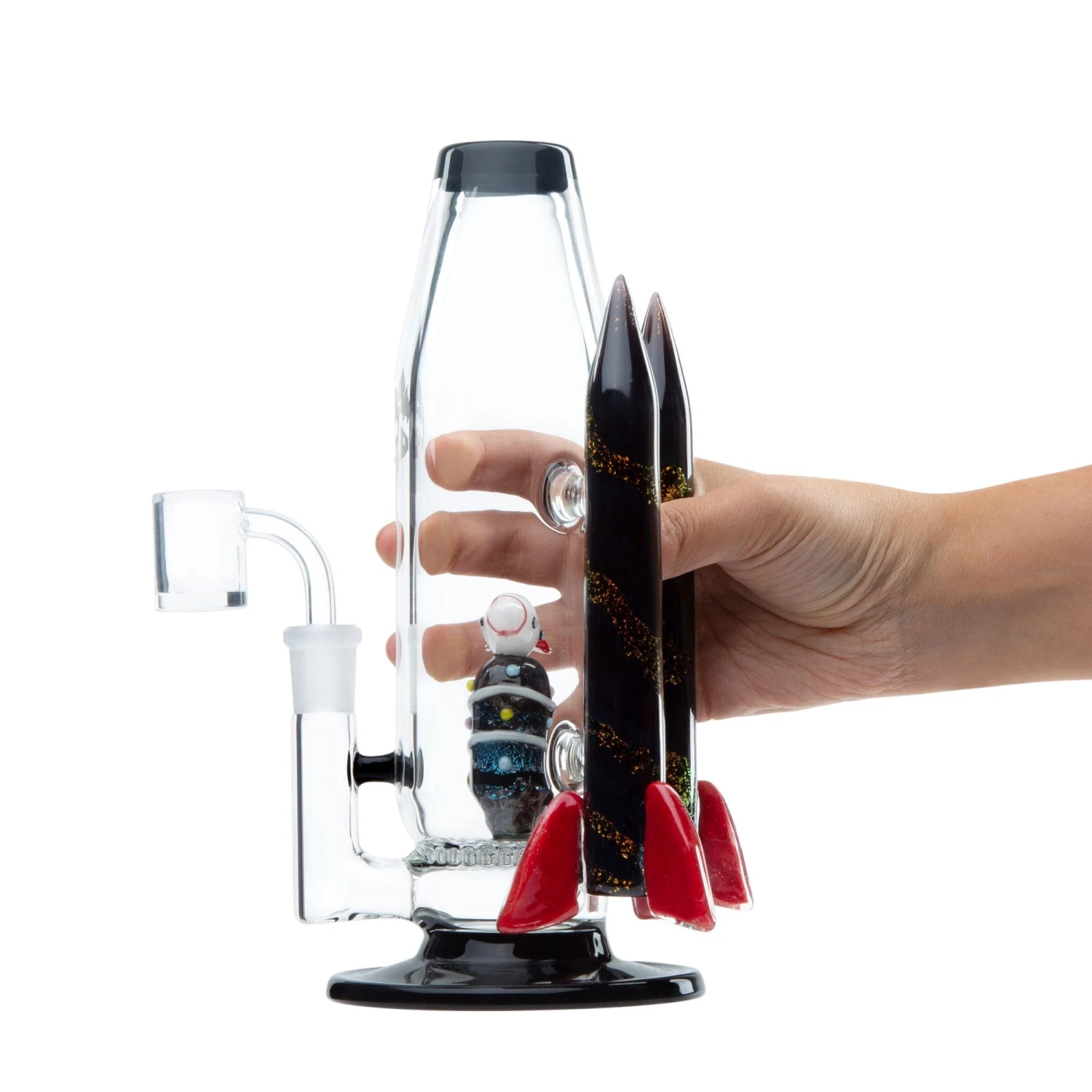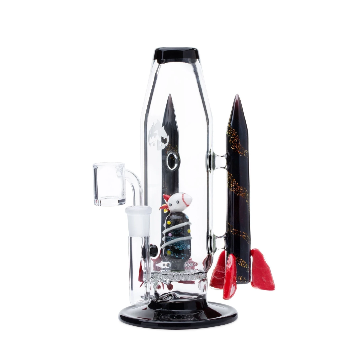 The large disc perc in the bottom of the chamber raises the waterline and launches hundreds of bubbles into the water when you take your hit. The big base and fuel rockets make this fun piece stable and exciting.