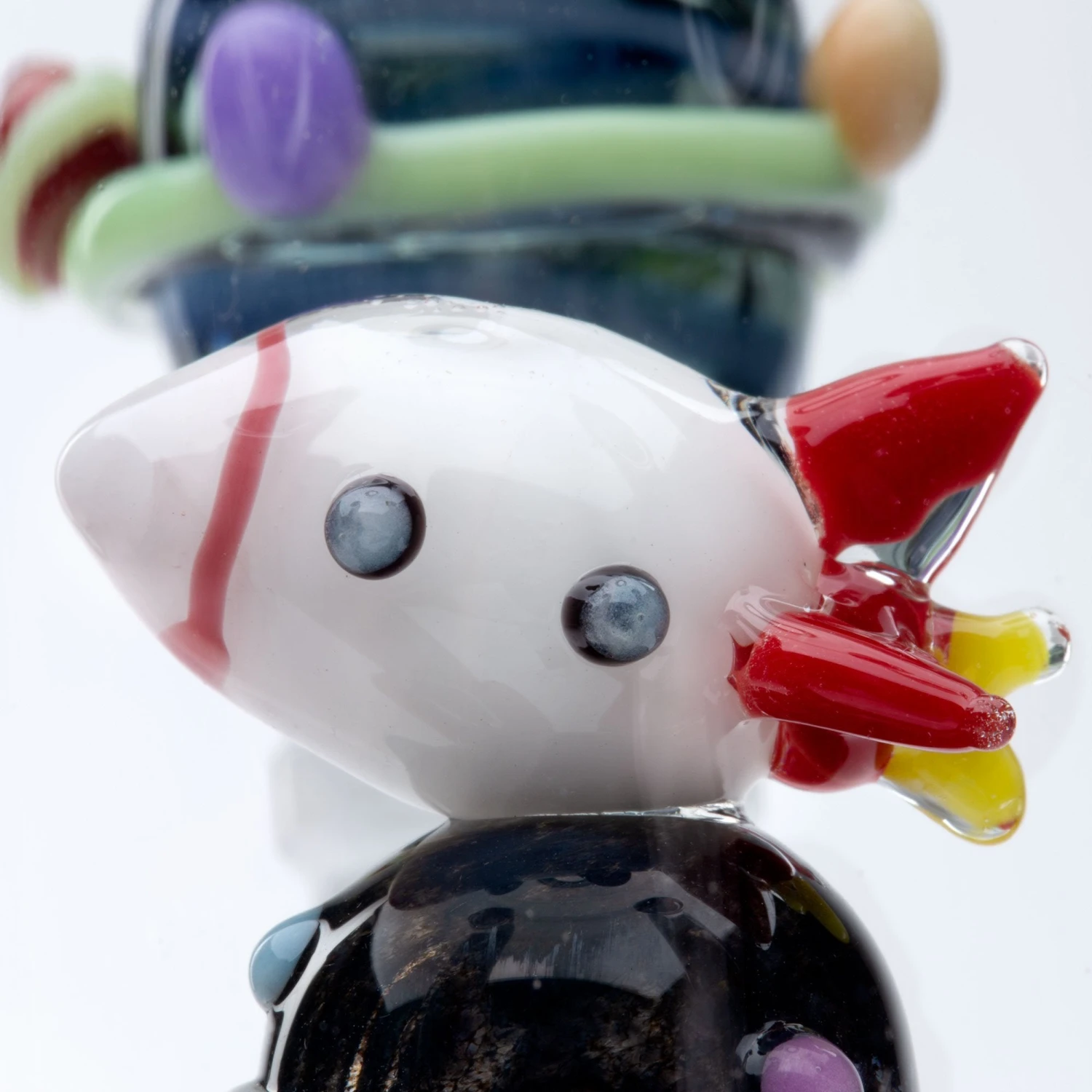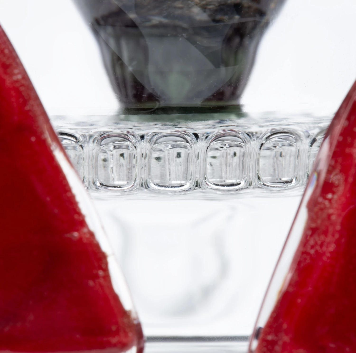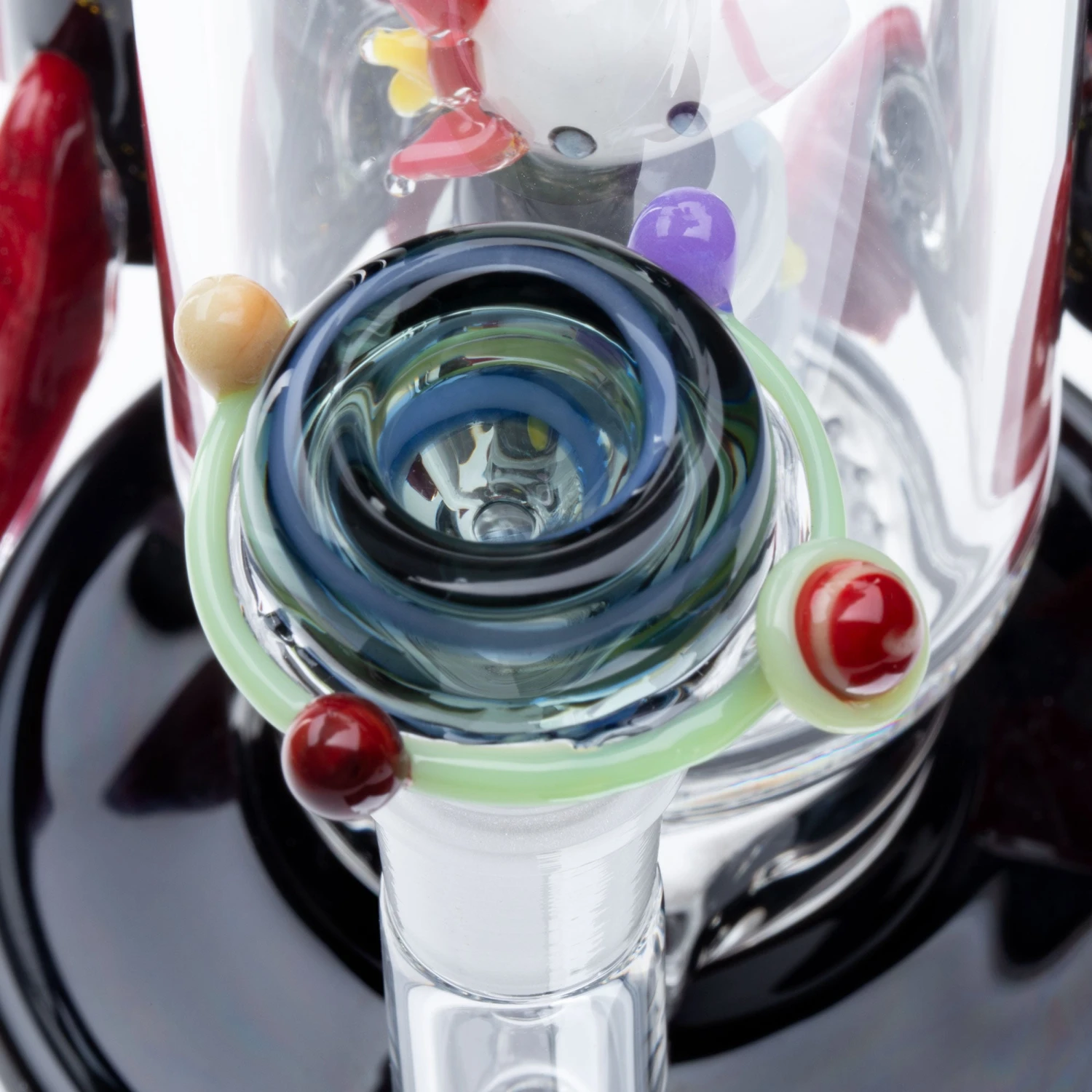 The large disc perc in the bottom of the chamber raises the waterline and launches hundreds of bubbles into the water when you take your hit. The big base and fuel rockets make this fun piece stable and exciting.