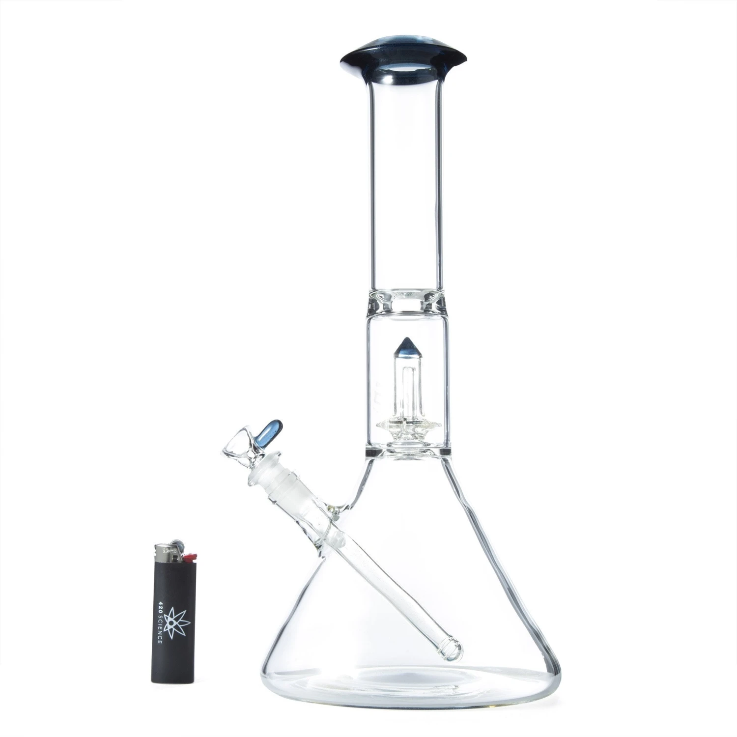 Geo’s glass is a glass pipes manufacturer located in Omaha, NE. They make quality American glass bongs, rigs, and hand pipes. Geo’s bong design is big, even for a beaker. These 14-inch tall beaker bongs have massive chambers that can hold enormous hits. The Circ perc in this bong is made from Crystal glass instead of borosilicate. Crystal glass is more vibrantly clear and durable. The color perc, mouthpiece, and base all tie together beautifully.