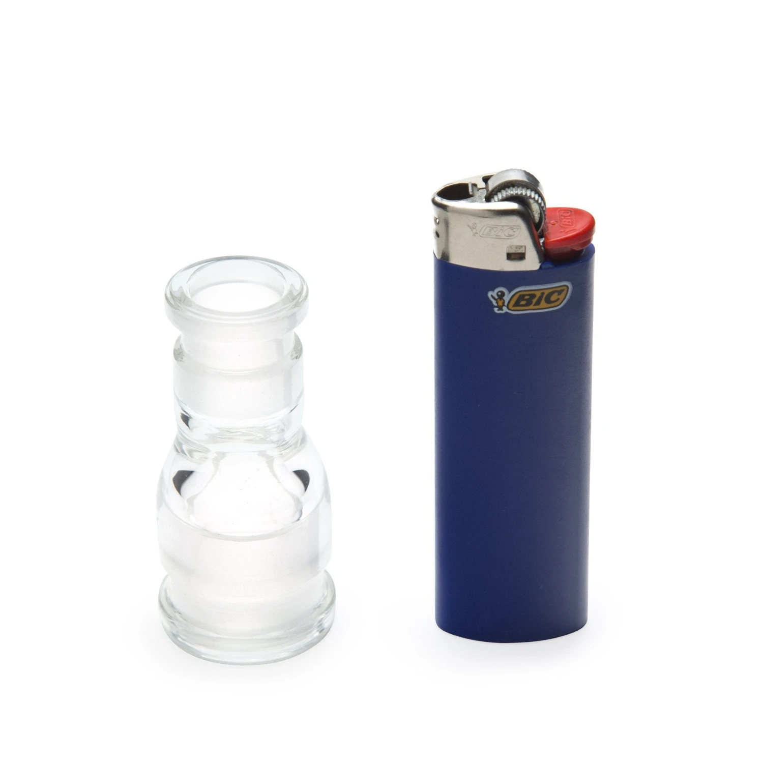 This adapter will expand or reduce the intake on your piece. Its reversable so you can do two things with it; change a piece that has a 14mm male joint into a 19mm female joint, or reverse it to change a 19mm male joint to a 14mm female joint. It’s your world!