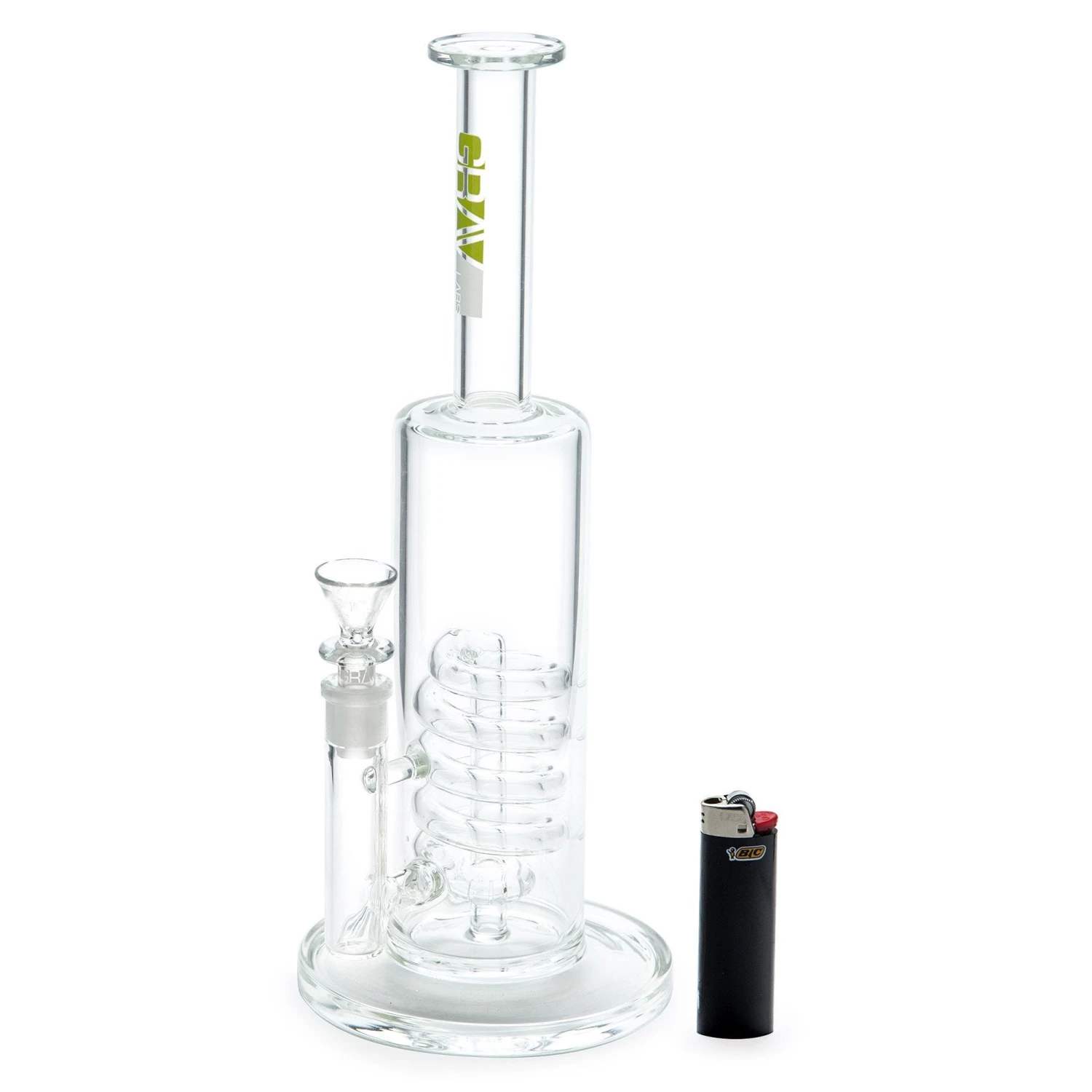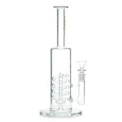 The Coil Showerhead water pipe is a wild ride for your rip. This perc is made for a higher water level; with the chamber filled halfway, the water line is displaced when hitting, and the entire body fills with evenly dispersed bubbles. The smoke is then pulled to the top of the spiral and is percolated through the large showerhead at the base of the chamber. The stemless design makes this piece simple to use. A thick and sturdy base complements the hefty chamber of this new pipe from GRAV. This piece is made for long big hits that you taste before even pulling the bowl, so be ready.