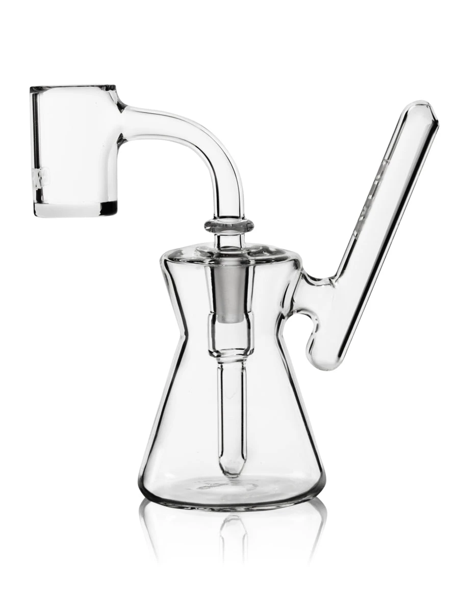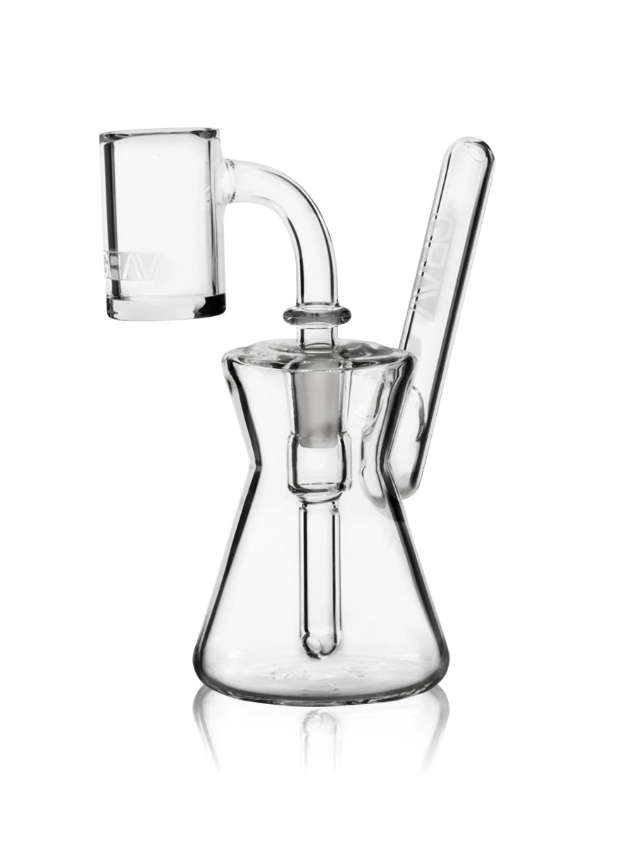 Savor the moment with the Hourglass Pocket Rig from GRAV. Small rigs just hit differently. This dab rig’s compact shape helps intensify flavors and deliver a long and tasty dab. The Hourglass Rig fits comfortably in your hand, and the specially designed mouthpiece prevents splashing back. This mini dab rig is perfect for on-the-go or at-home use. It comes with a flat-top quartz banger.