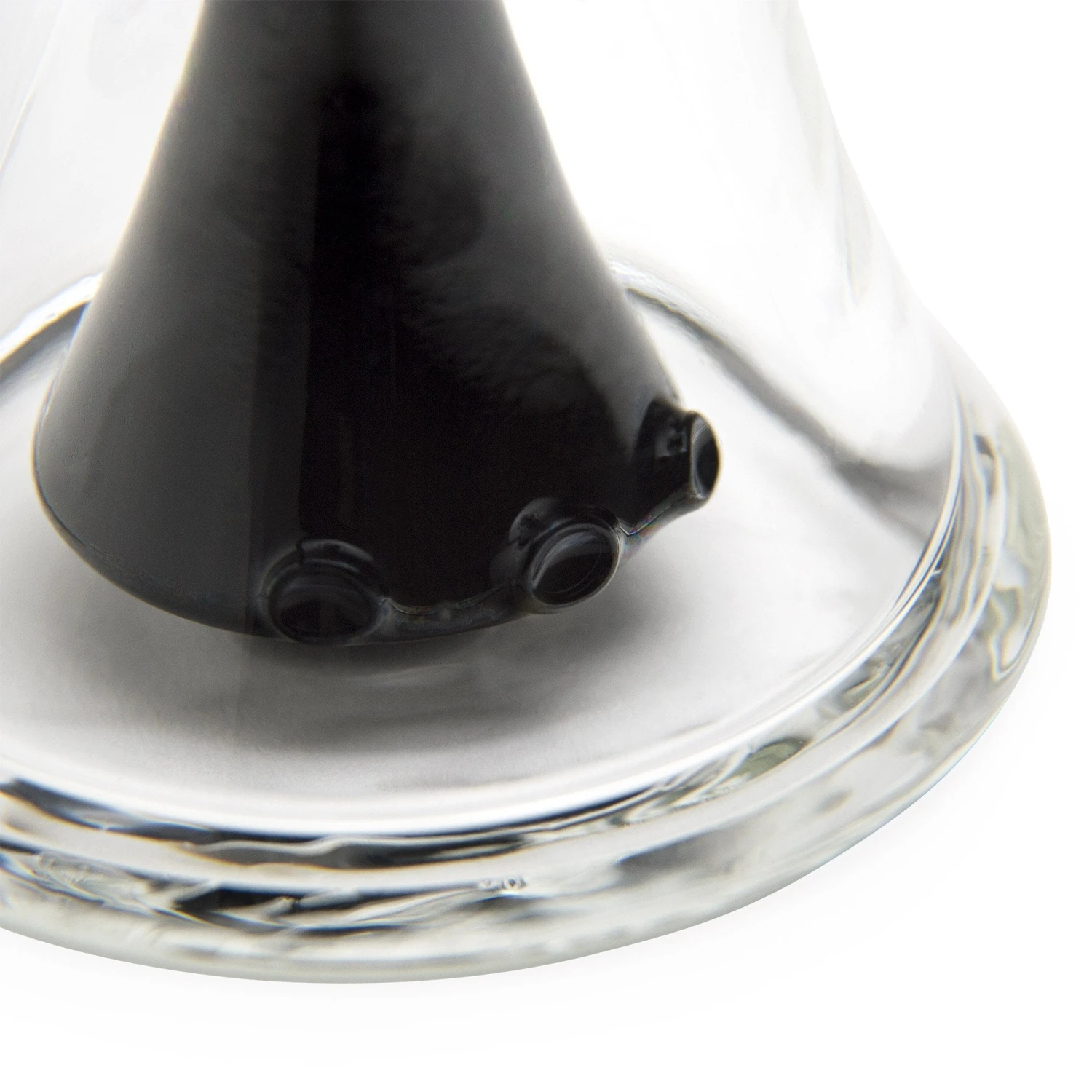 The Coppa has the largest percolating downstem in the Orbis family. The three holes in the cone-shaped downstem face the user to ensure that their hit is quickly percolated and the chamber is cleared with ease. This rig has a low waterline and has a fixed downstem. The female joint is flame polished for a clean finish and fixed in two places to reinforce it.