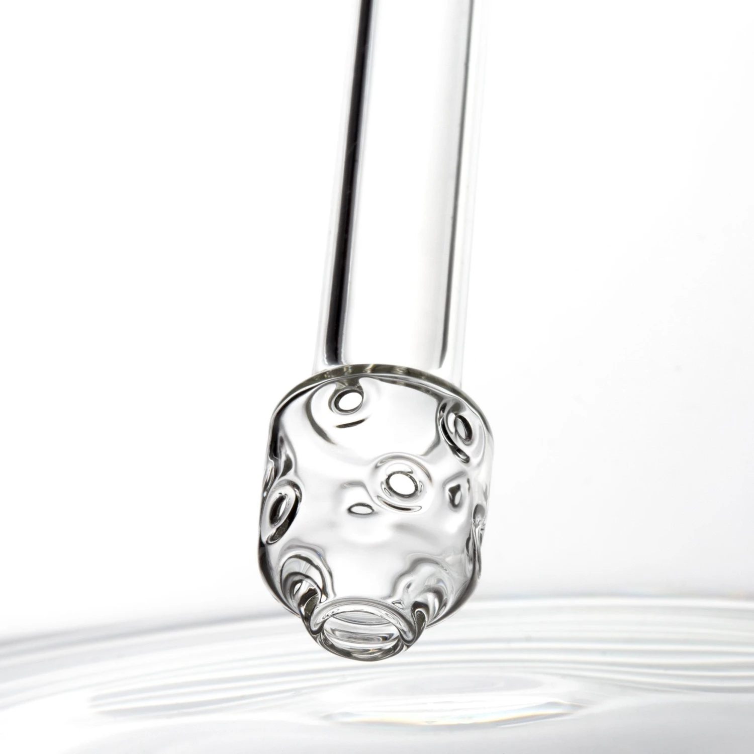 The Bell Perc resembles a combination of the circ and matrix percs. The difference is that the bell perc has holes that direct the bubbles and water upwards to the next perc so that the water stays dynamic and moves through each chamber aggressively filtering your hit. The additional ice-catch helps reduce splash and allows you to cool down your bong rips as well.