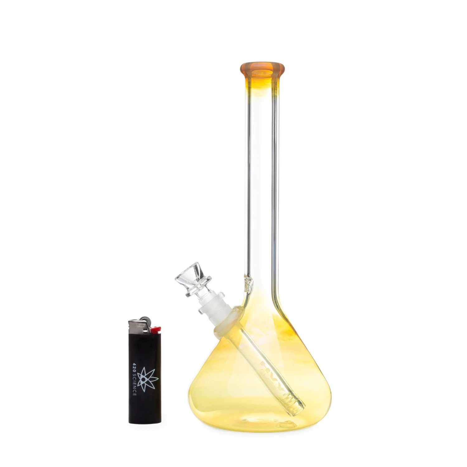 The color change body is a rarity among beakers. You usually only see that in pipes and other small pieces. It will take longer for the color change to take place because it is a larger piece so you have the opportunity to observe the subtle changes over time.