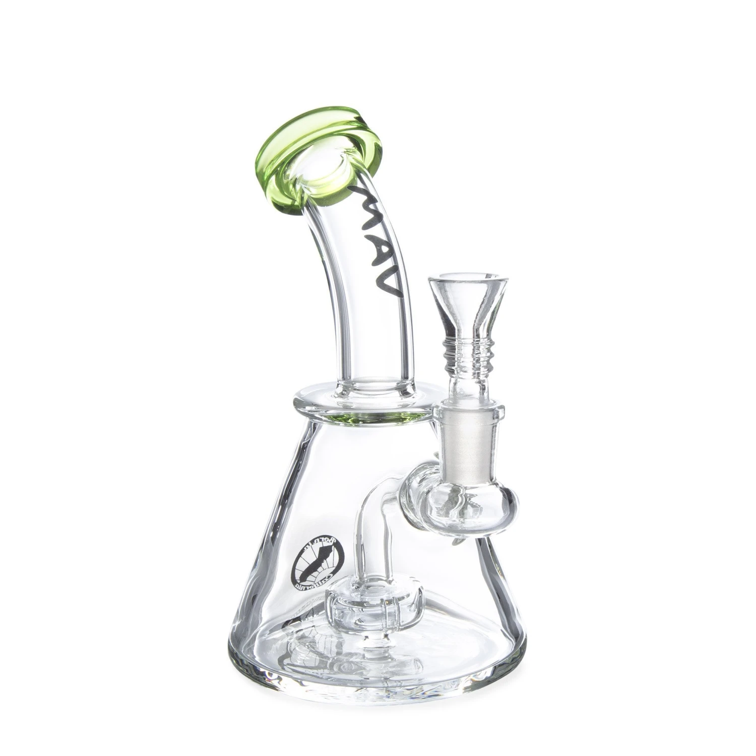 MAV Glass is a California based glass company that focuses on scientific pipe designs that have fun features and innovative designs. They know how to get the most out of a small dab rig design with perfectly placed percs and mouthpieces.
