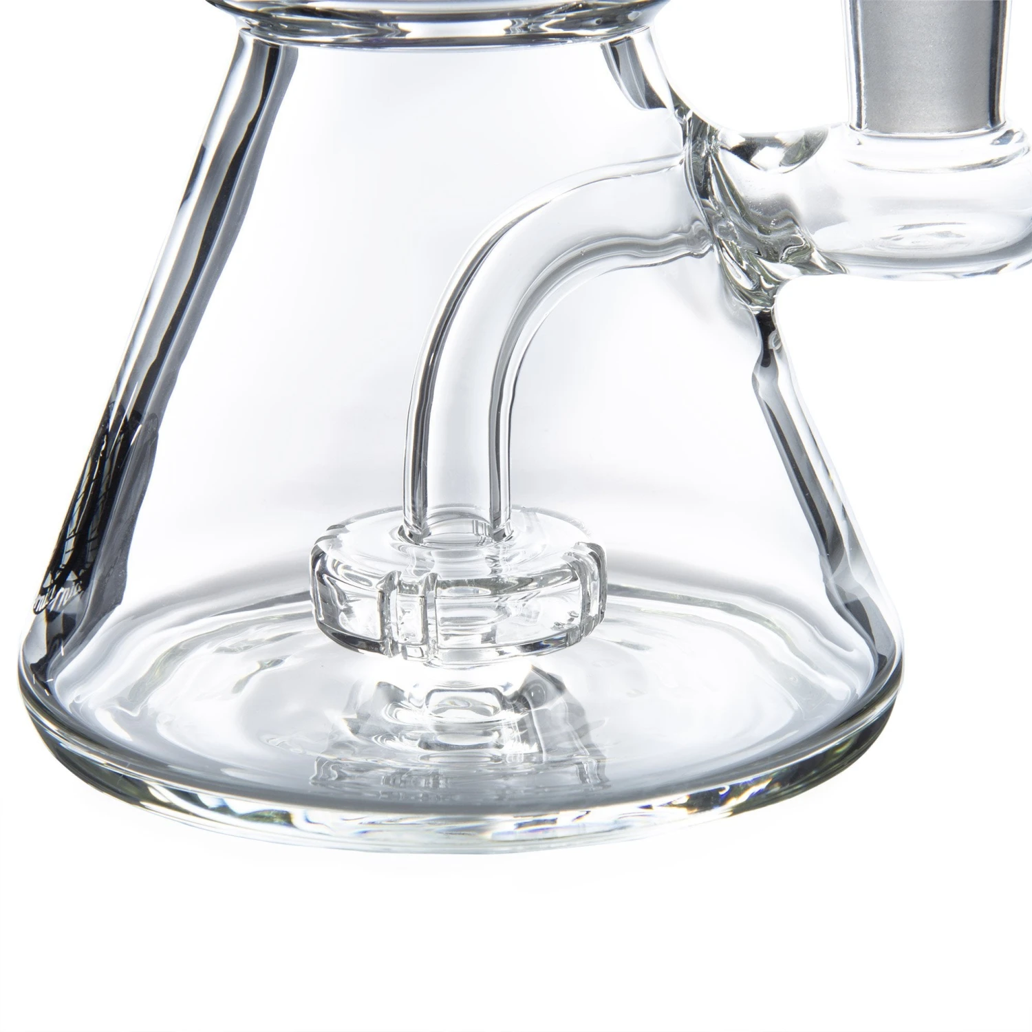 The Bent Neck Showerhead dab rig has an angled mouthpiece that is easy to hit and makes a perfect seal for smooth rips. The direct inject downstem ends near the base of the glass dab rig. The wide showerhead perc sends water out to the edges of the cone-shaped base to reduce splash back and cool down your hit.