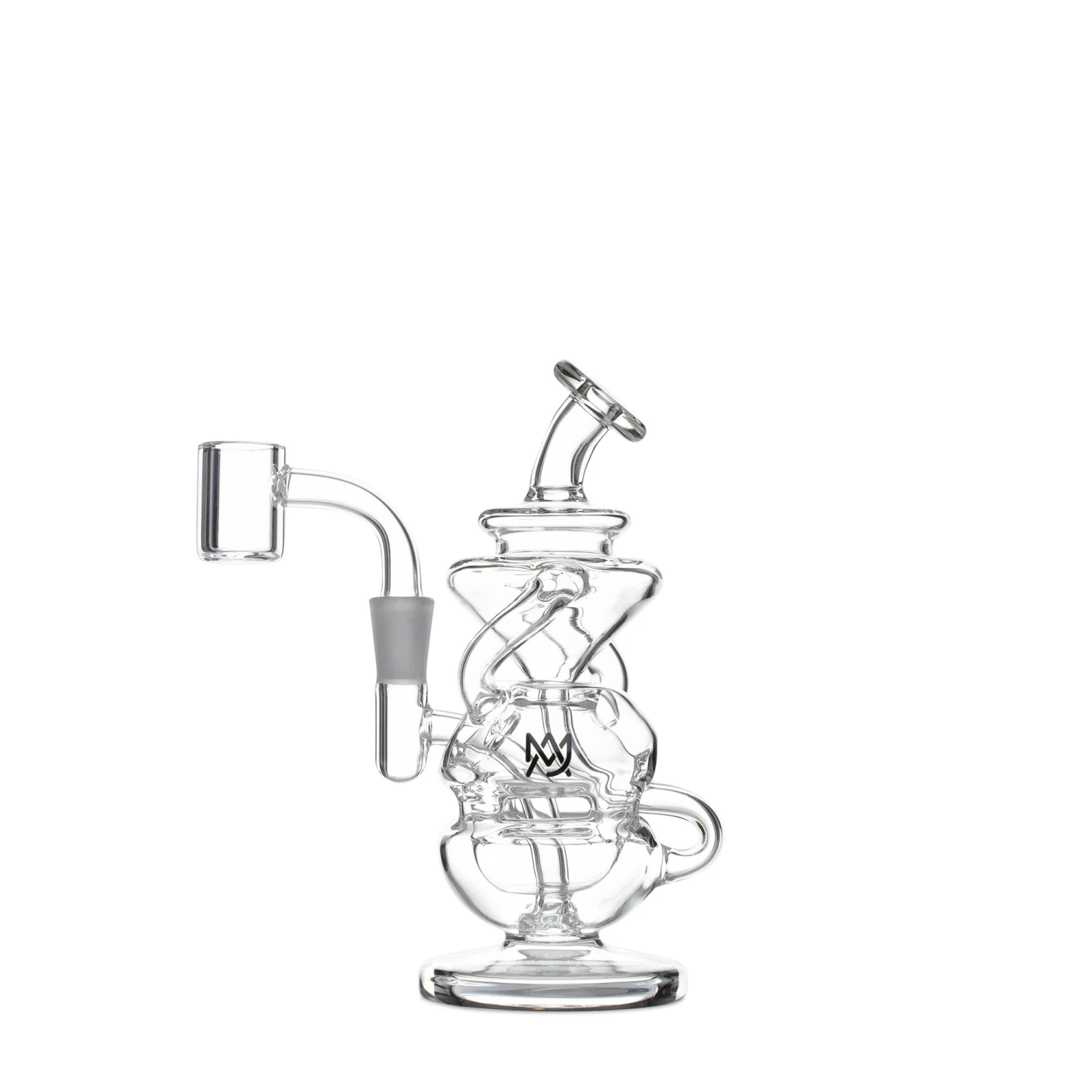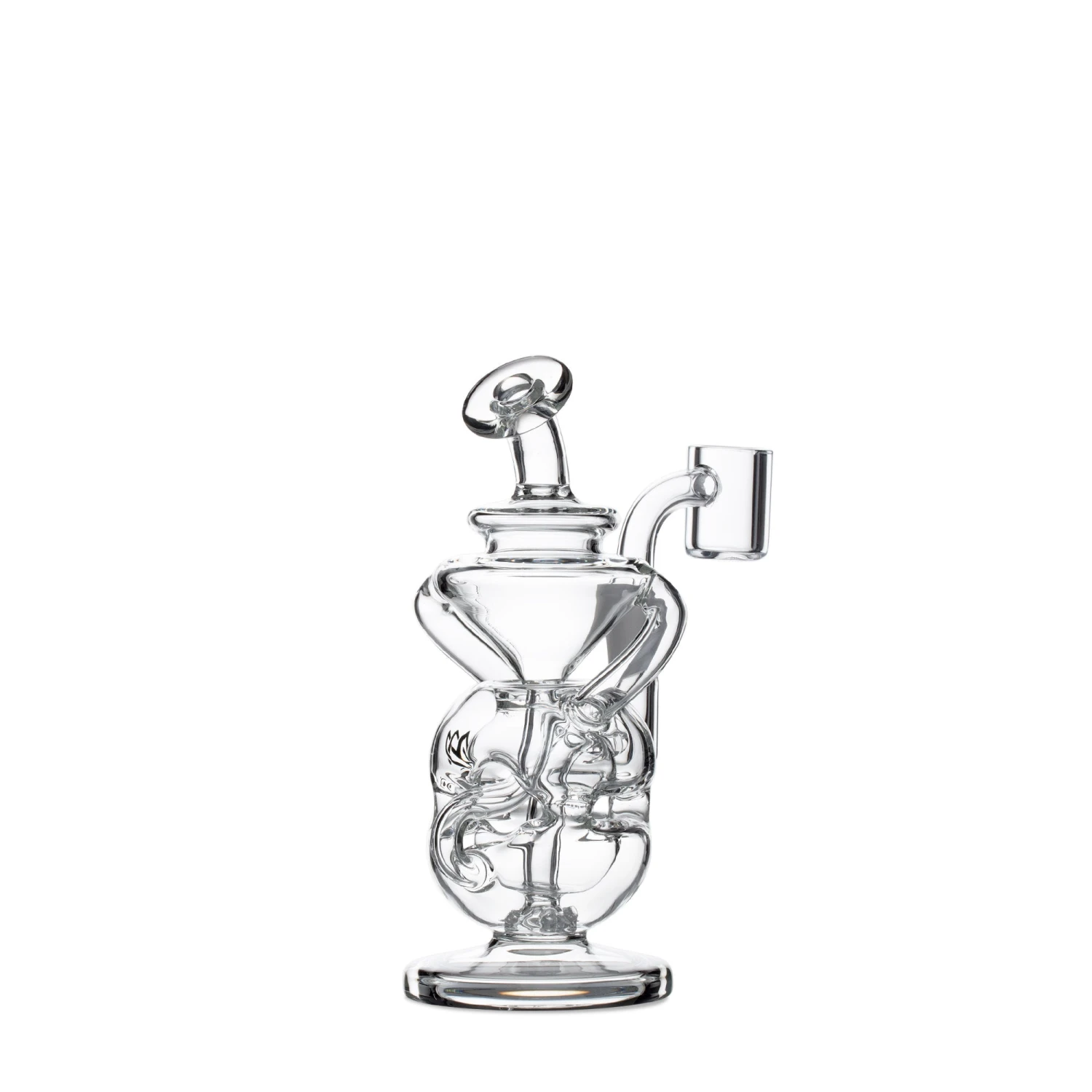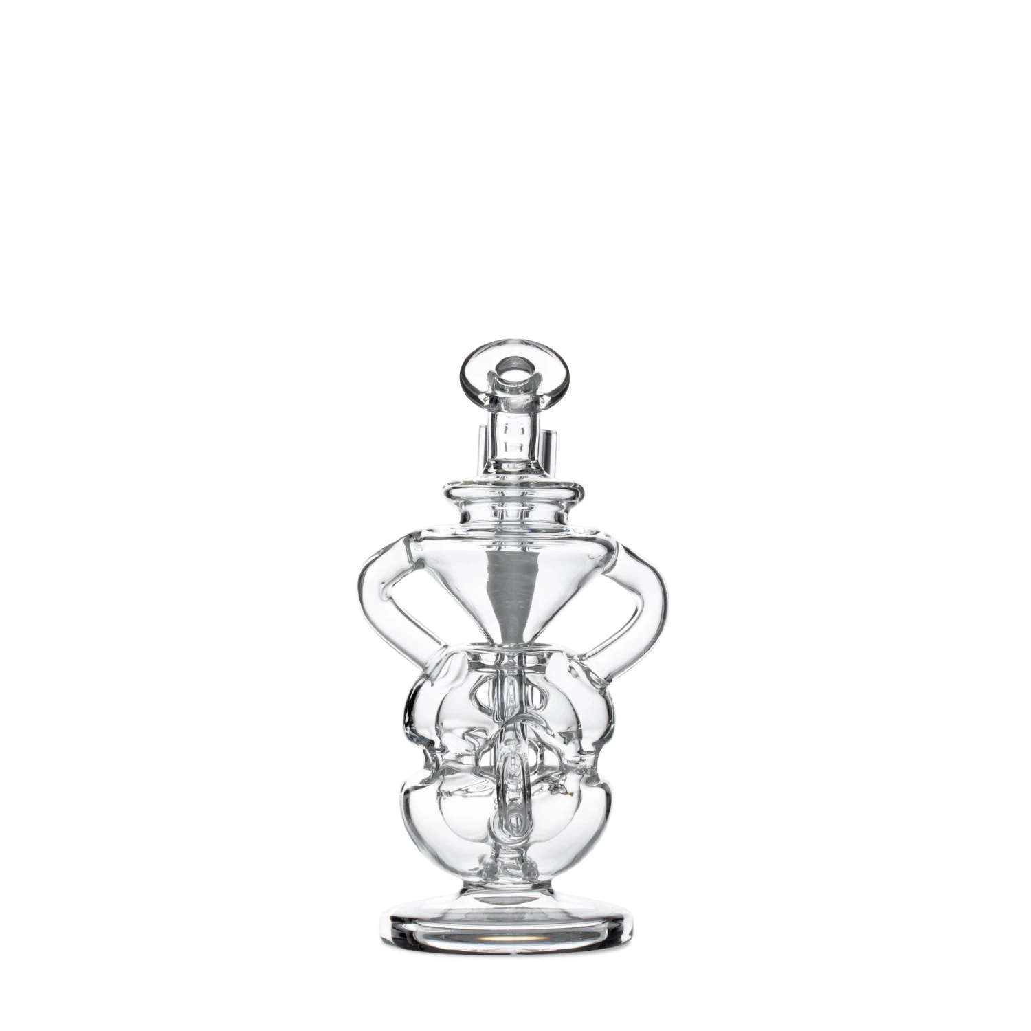 The Infinity dab rig combines the classic fab-egg percolation, with the more rhythmic cyclonic filtration of a double uptake recycler, all culminating for in a percolation experience that takes a low water line and spreads it all throughout the rigs with effortless function.