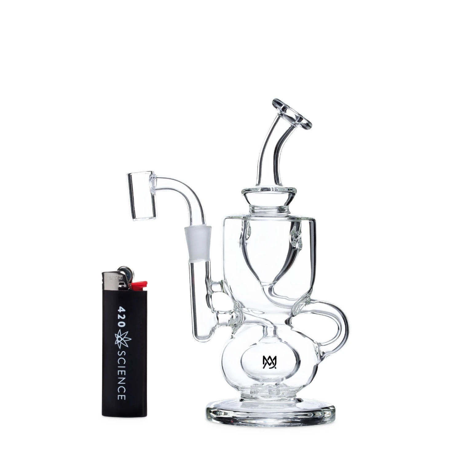 The Titan Dab Rig is the pinnacle of design for the glass artists at MJ Arsenal. The Titan features a double sphere base connected perc, with a Klein draining incycler that functions much like the Ursa Mini Rig, but with even more churn and zero drag.