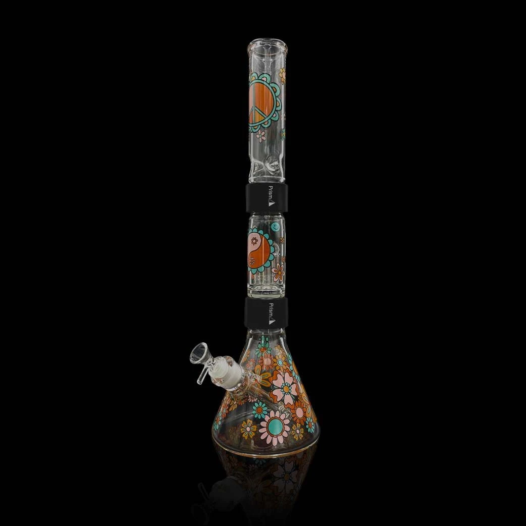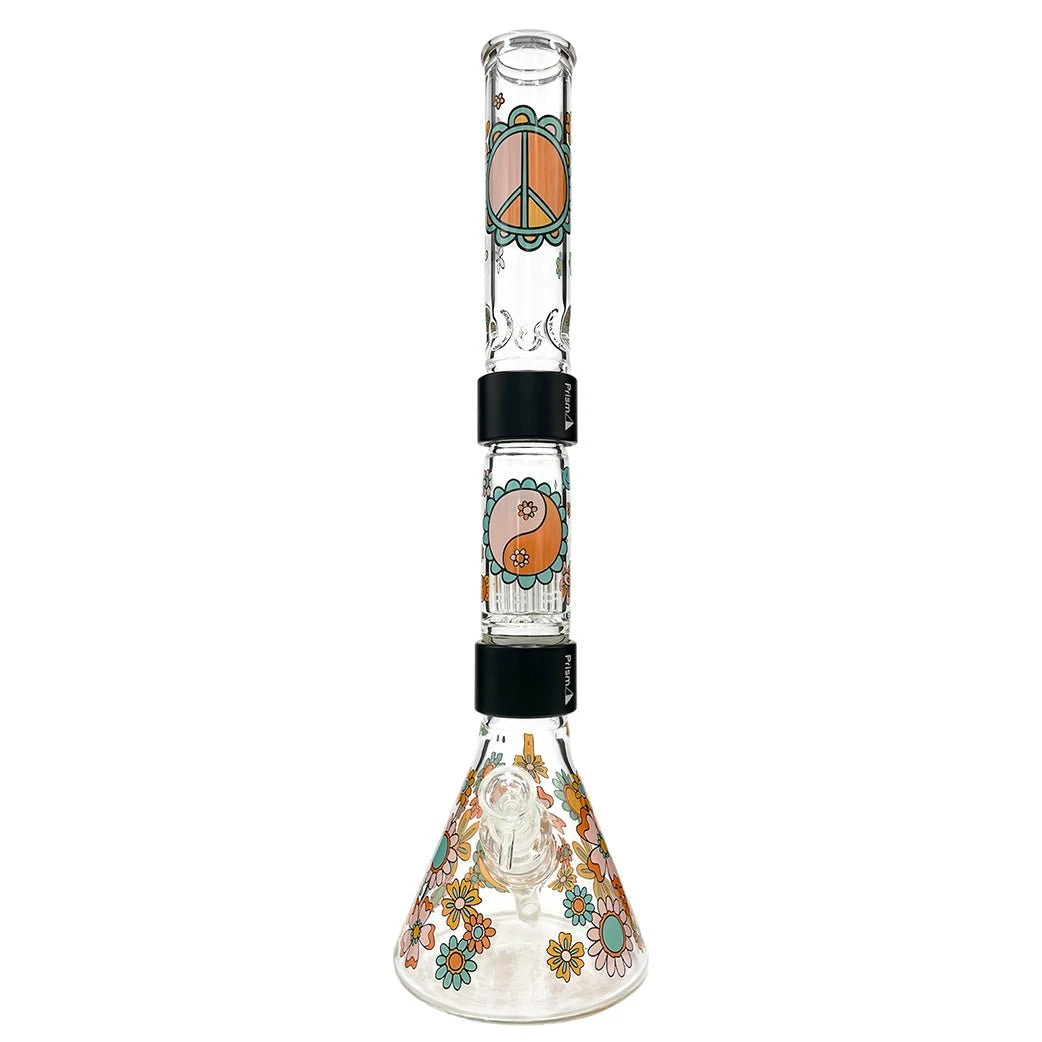 Prism’s Flower Power Beaker Double Stack is their rendition of the timeless beaker single percolator bong, and it undeniably stands out for its stunning aesthetics. The custom bong system can be effortlessly disassembled for convenient cleaning and storage. The system also allows mixing and matching different components, enabling users to customize and share their experiences with friends.