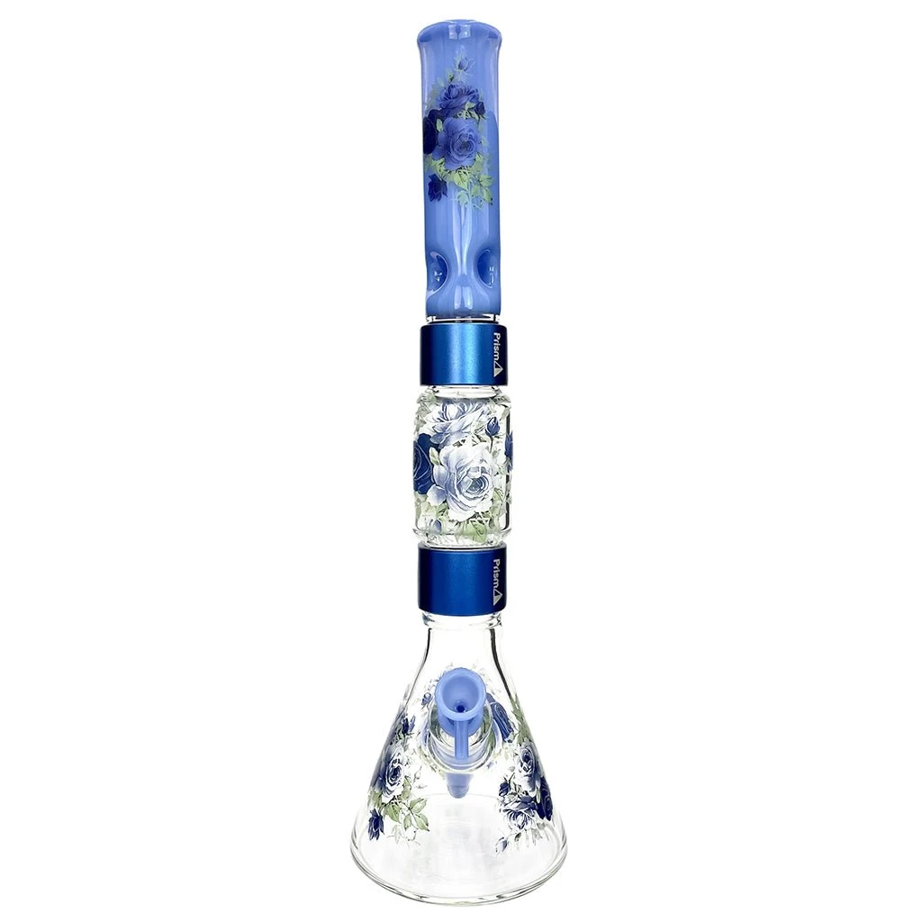 Prism introduces the Moonlight Rose Beaker Double Stack as their take on the timeless beaker single percolator bong, and there’s no denying its captivating beauty. This exquisite piece features a Standard Mouthpiece, Big Tree Perc, 7mm Beaker Base, a clear downstem and 14mm bowl, along with two Black Halo connectors.
