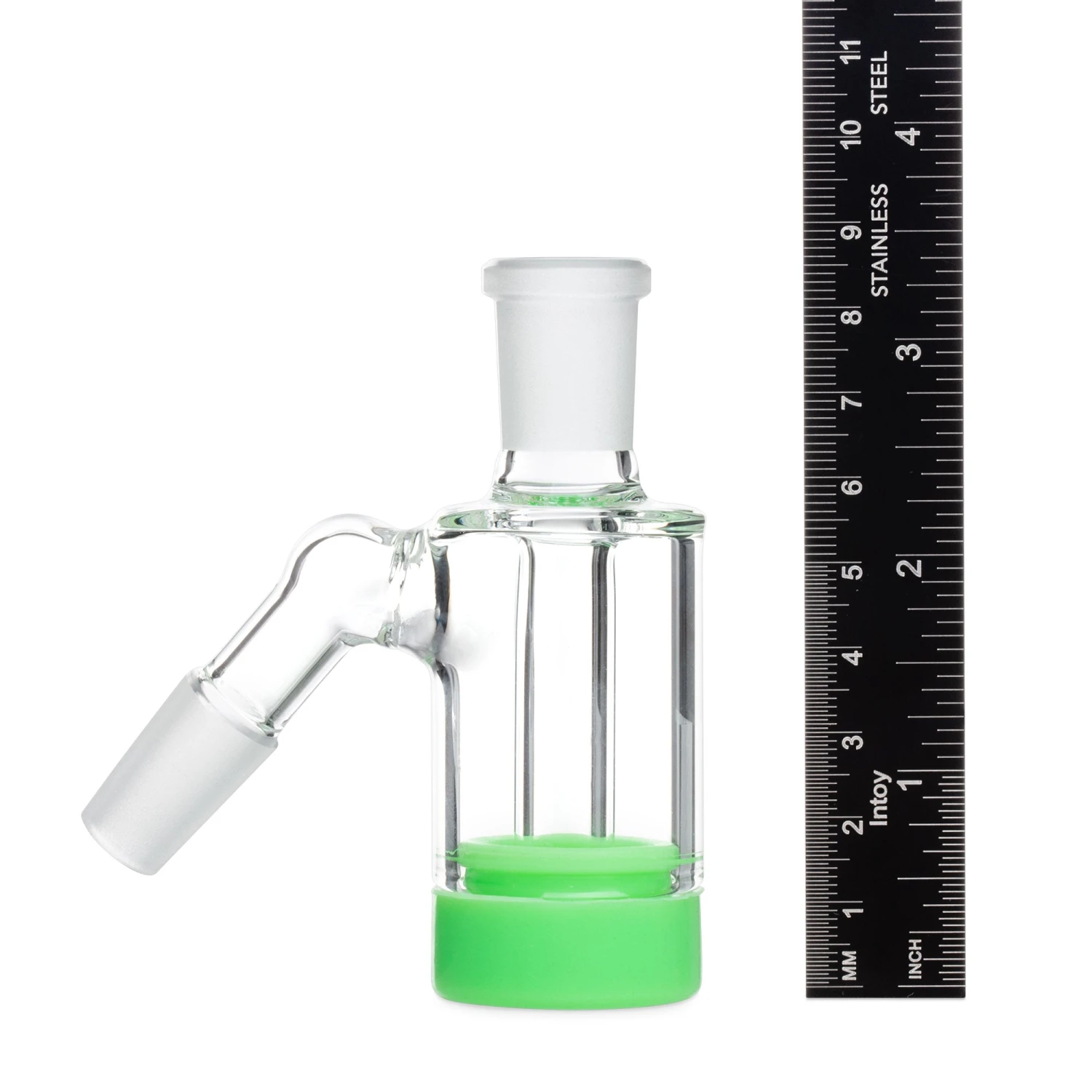 This reclaim catcher slides into your dab rig and then your banger attaches to it. When you take a dab reclaim will gather in the bottom of the silicone chamber. Once it gets full, detach the silicone from the bottom of the glass collector and start dabbing all over again!