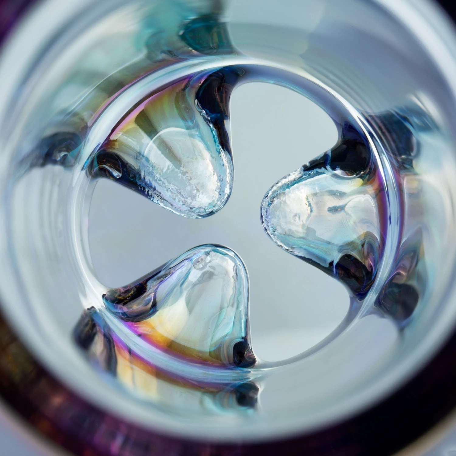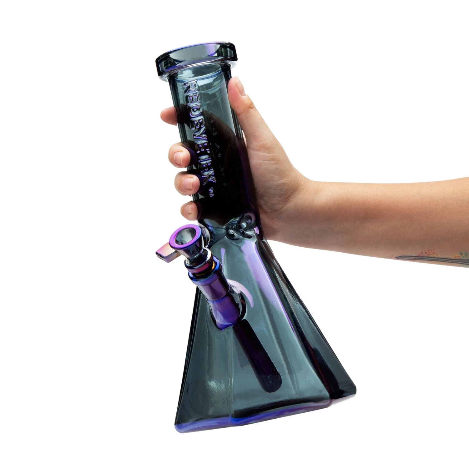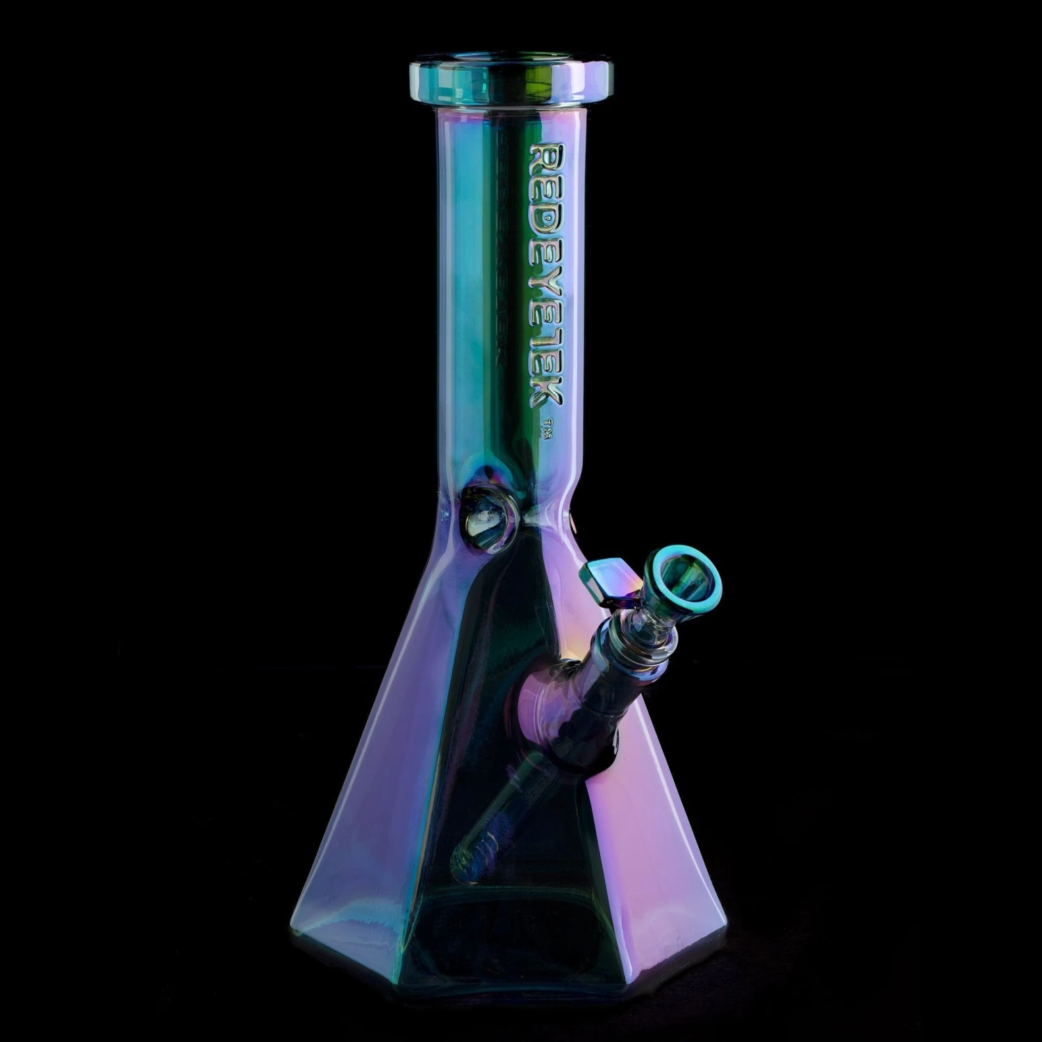 The Hex Base Bong from Red Eye Tek has a chromatic metallic finish that can’t be found anywhere else. Meaning that they keep it a closely guarded secret and if anyone tries to duplicate it they have permission to send a robotic assassin after them. Their Terminator finish is a shifting and reflective pleasure to behold.