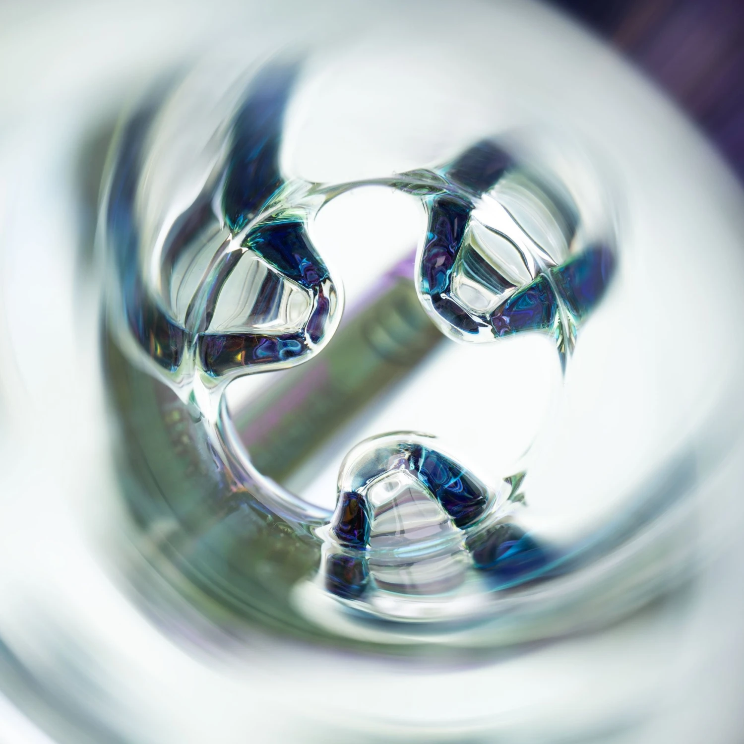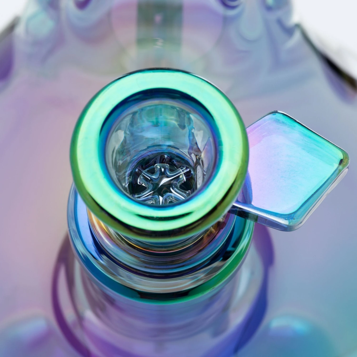 The Hex Top Bong from Red Eye Tek has a chromatic metallic finish that can’t be found anywhere else. Meaning that they keep it a closely guarded secret and if anyone tries to duplicate it they have permission to send a robotic assassin after them. Their Terminator finish is a shifting and reflective pleasure to behold.