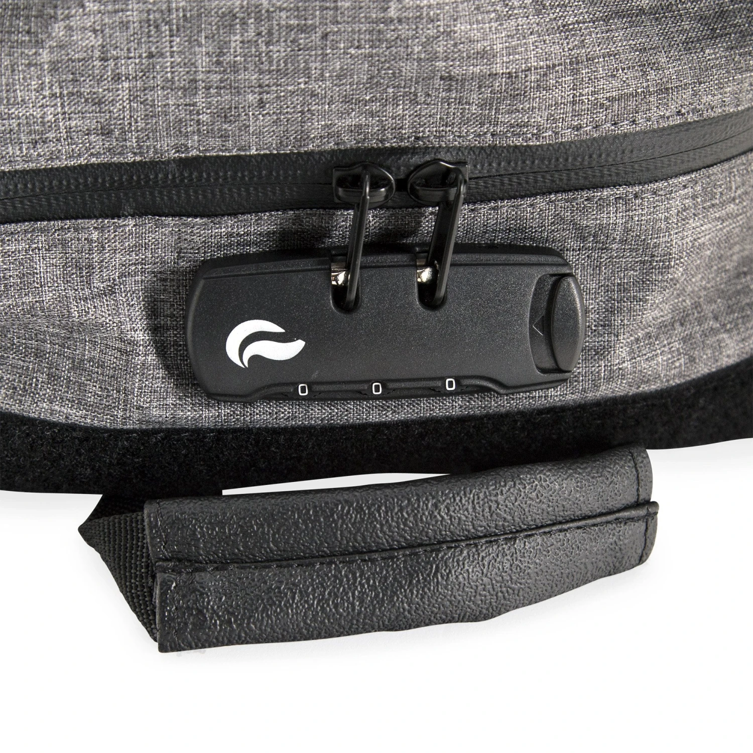 This smell proof modern backpack will have you trekking through the city with style and confidence. Plenty of storage is available for all your adventuring needs as well as a lockable zipper to secure everything.