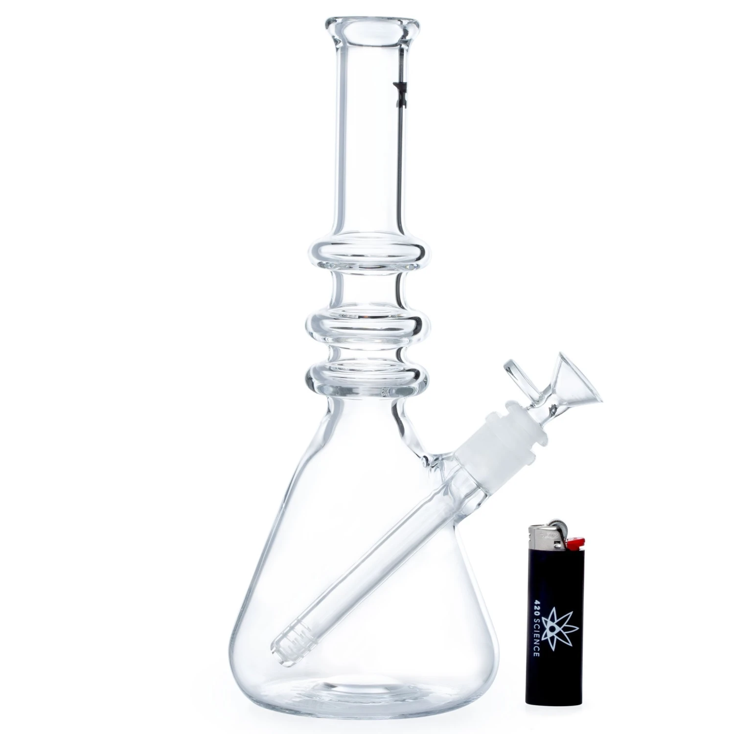 Are you an active bong smoker who likes to walk around their living room gesticulating wildly while toking? If that sounds like you then the Triple ring beaker was made for you. Solid Glass is all about making bongs that fit a specific role. The Triple rings in the middle of the bong reduce splashback but more importantly make this pipe very easy to hold from any angle. This tall beaker bong has a modern look that also makes it easier to catch if you bump it. The narrow beaker bottom is good for hitting on a tilt or standing straight.