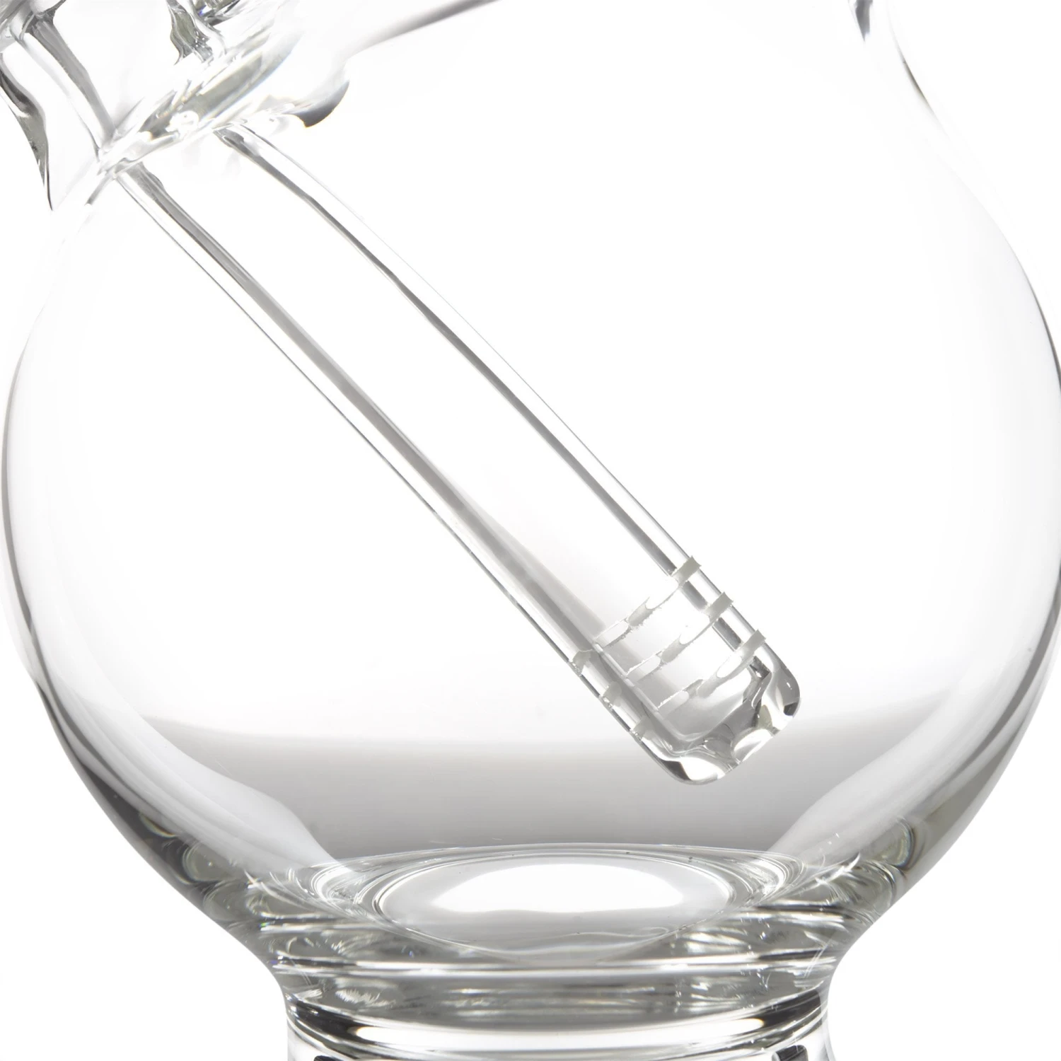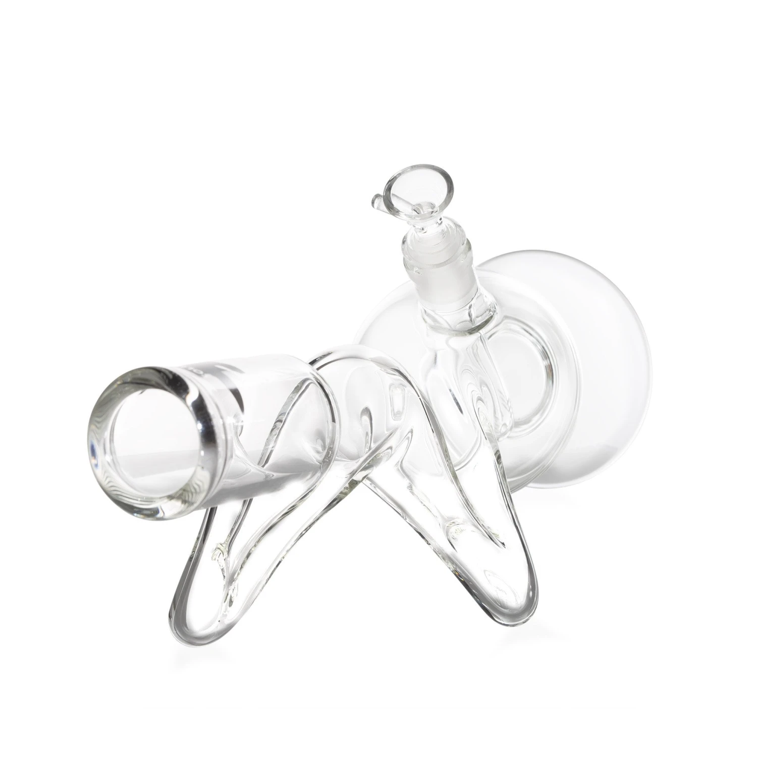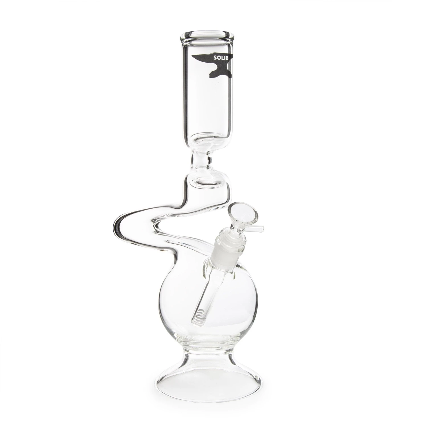 The Standup or Sit down water pipe from Solid Glass functions well straight up on a table or leaning. What’s even cooler is that once you lean this bong and hit it, you can leave it on a lean and it will balance perfectly fine. It works great in either standing or sitting mode and the curve in the neck could hold a little ice if you wanted also.