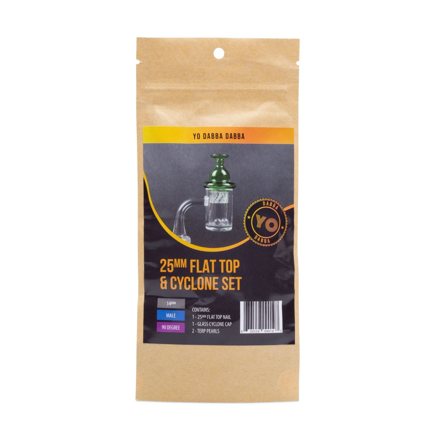 The new modern standard for dabbing with a rig is to have a quartz banger equipped with terp pearls and a carb cap that creates a vortex force to spin the pearls and keep your dabs moving and vaporizing. The Yo Dabba Dabba Nail quartz nail set is everything you need to get your dabs spinning and hitting efficiently and down to the last drop.